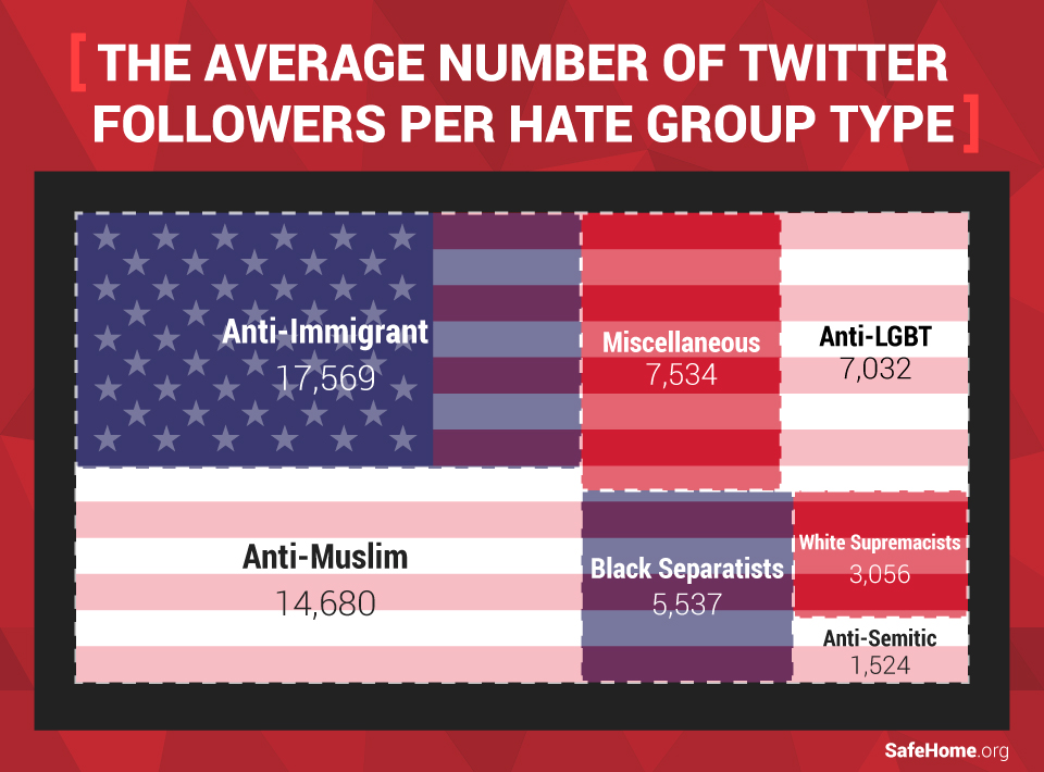 Hate groups with the largest number of followers on Twitter, on average, had an anti-immigrant agenda. As one of the most passionately contested issues of today, the conversation on immigration and the attitude toward immigrants who may already be residing here in the U.S. has reached a tipping point.