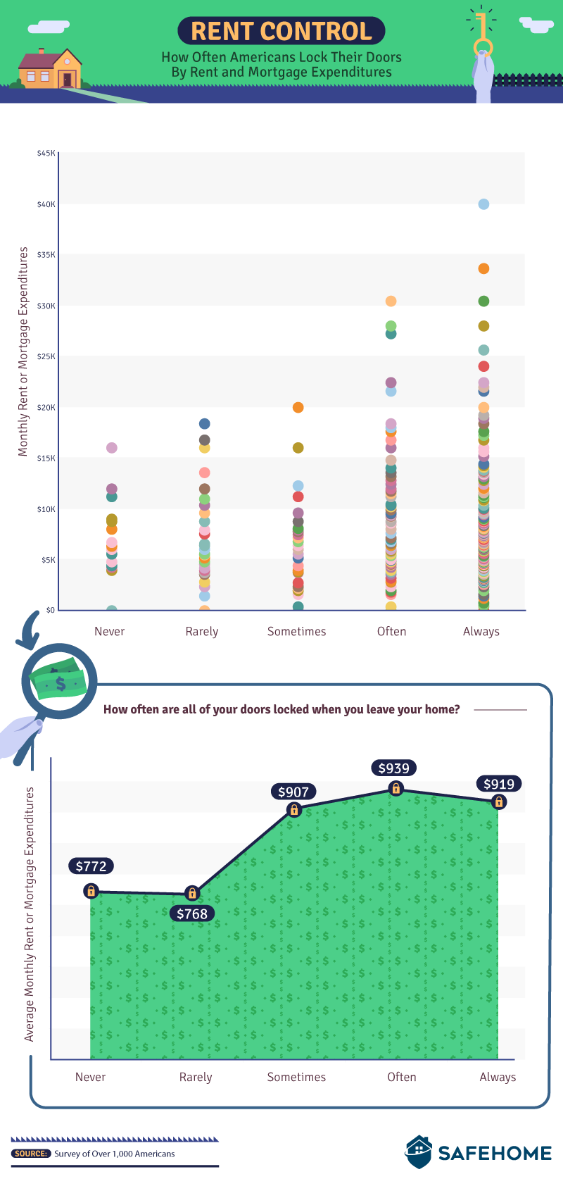 While burglars don't necessarily target homes of high value due to the likelihood of security features, the more one spent on their average monthly rent or mortgage, the more often they locked their doors.